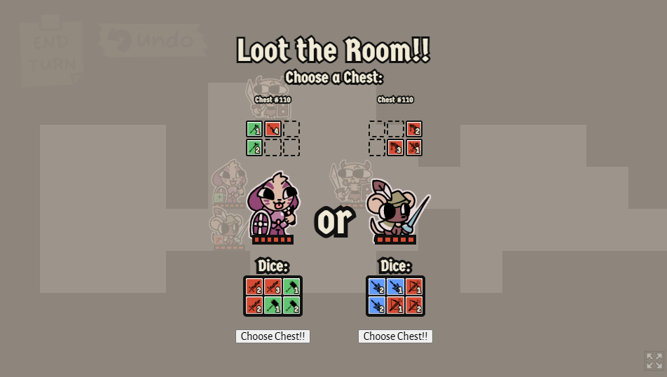 Fun game! I love the adorable graphics and Into-The-Breach style tactics! The luck concept was fun enough that I wish the developers went further with it! Reduce the number of rerolls to make changing your dice with chest items a bigger issue. I want to be at the mercy of the dice! There's a lot of ways to twist this concept that I'm sure had to be set aside for the sake of time, but it was a lot of fun!